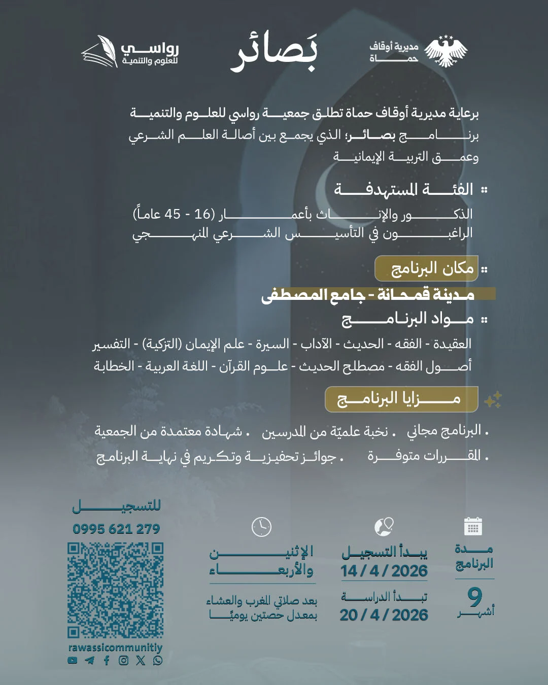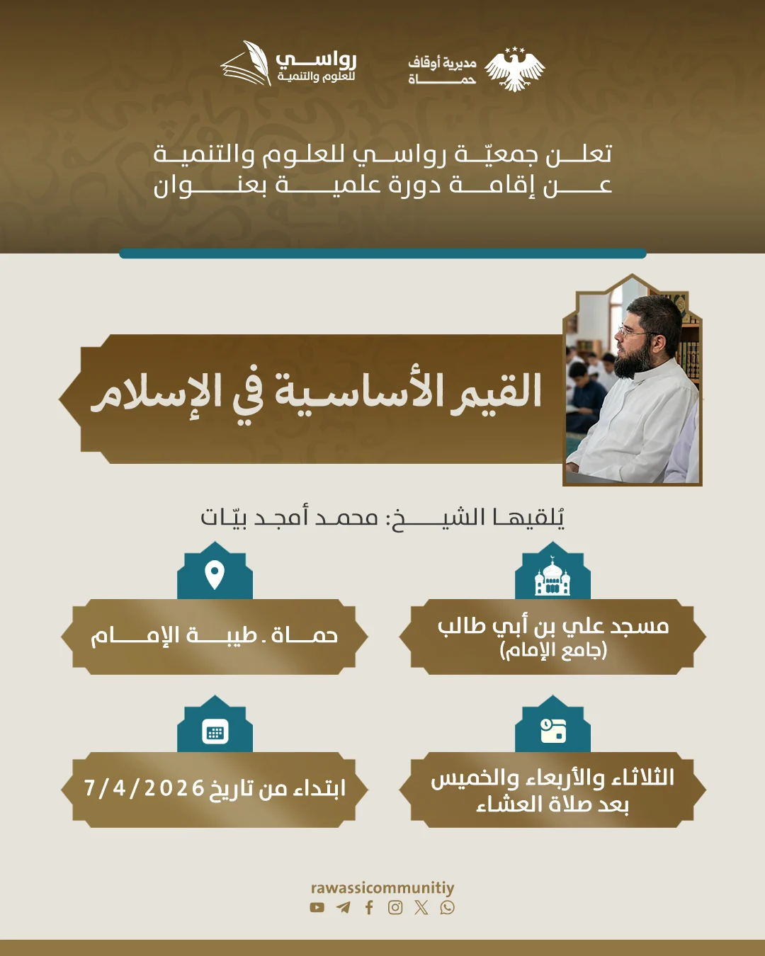 تأسست جمعية رواسي للعلوم والتنمية المجتمعية كمنارة علمية وتنموية تهدف إلى تعزيز القيم الإسلامية والمساهمة في بناء مجتمع متعلم ومزدهر. تسعى الجمعية إلى تقديم برامج تعليمية متكاملة تشمل العلوم الشرعية والعلوم الحديثة، مع التركيز على تطوير المهارات الحياتية وتعزيز التفكير النقدي.
