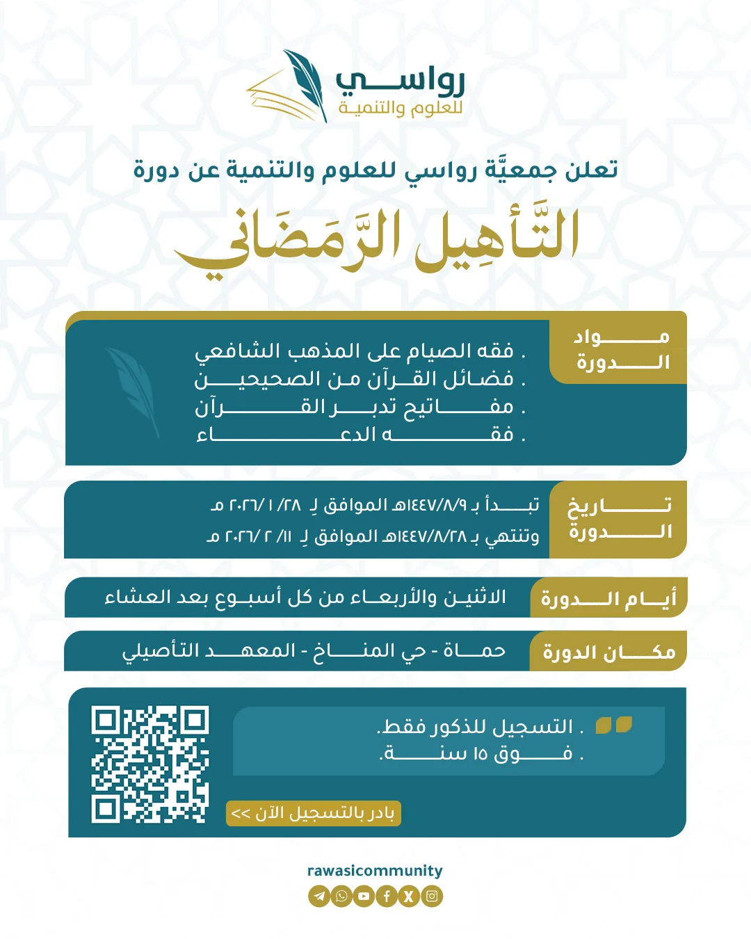 انطلاقاً من إيماننا العميق بأهمية العلم كركيزة أساسية في بناء الإنسان والمجتمع، ووسيلة فعّالة لتحقيق التقدم الحضاري، قامت جمعية رواسي بتكريس جهودها للارتقاء بالجانب التعليمي. حيث أطلقت الجمعية مجموعة متنوعة من المسارات التعليمية التي تهدف إلى تعزيز المعرفة العلمية والمعلوماتية.